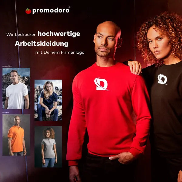 Bei Promodoro steht Qualität ebenfalls an erster Stelle. Die Kollektion überzeugt mit edlen Materialien und sorgfältiger Verarbeitung, die Du sofort spürst. Für Textilien, die richtig was aushalten müssen, werden strapazierfähige Mischgewebe aus Baumwolle, Polyester oder Elasthan verarbeitet. Je nach Produkt verwendet Promodoro unterschiedliche Stoffarten, die optimal auf den jeweiligen Einsatz abgestimmt sind. Für T-Shirts z.B. kommen geschmeidige Maschenwaren wie Single Jerseys, Rip-, Interlock- oder Piqué-Stoffe zum Einsatz.