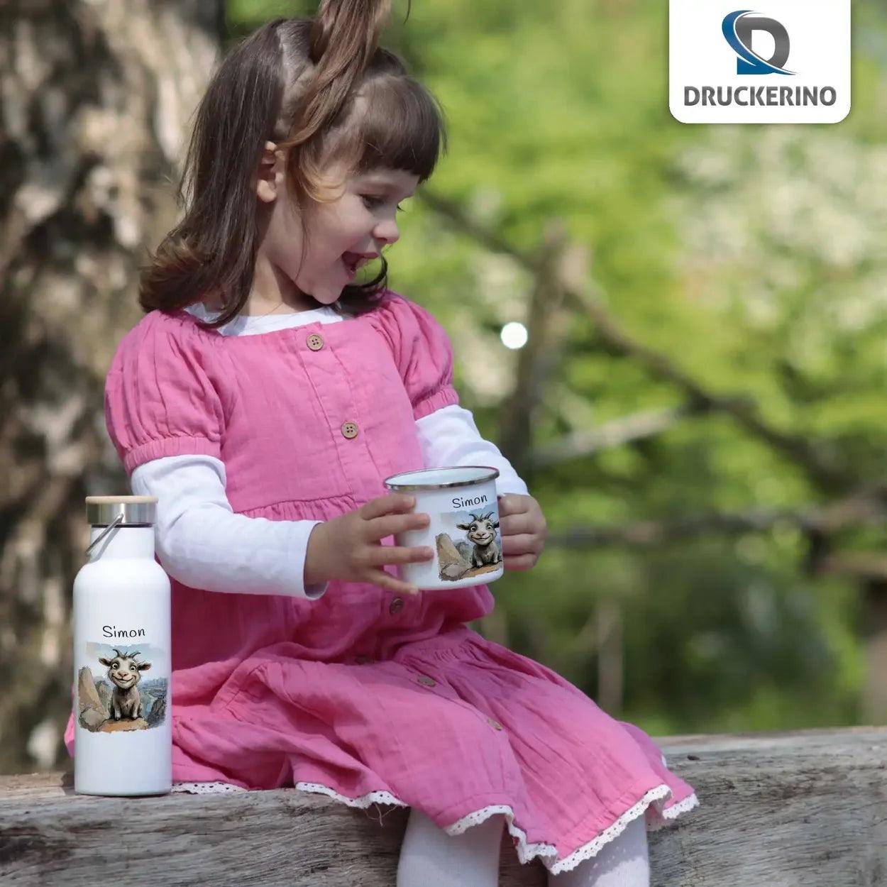 Abenteuer-Bergziege Emaille Tasse für Kinder personalisiert