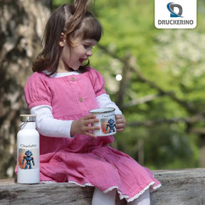 Roboterfreund Emaille Tasse für Kinder personalisiert